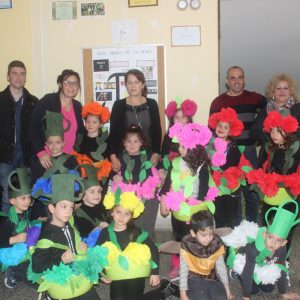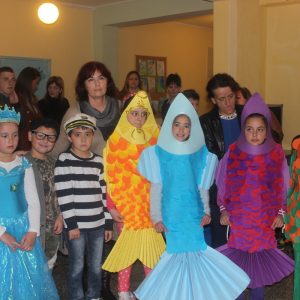 U kategoriji grupnih maski žiri je odlučio da prvo mjesto ravnopravno podijele maske CVJETNA BAŠTA (učenici 1. razreda matične škole) i BAJKA O RIBARU I RIBICI (učenici 4. razreda matične škole).